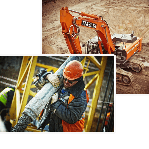 Photos de l’équipe en casque, sur chantier